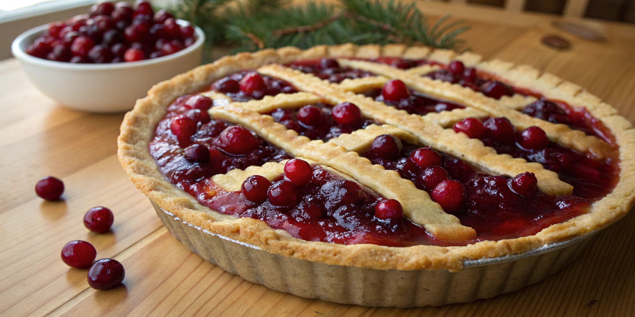 • Let the pie cool for at least 15 minutes before garnishing with fresh cranberries. Slice and serve this delightful festive treat with your favorite holiday beverage.